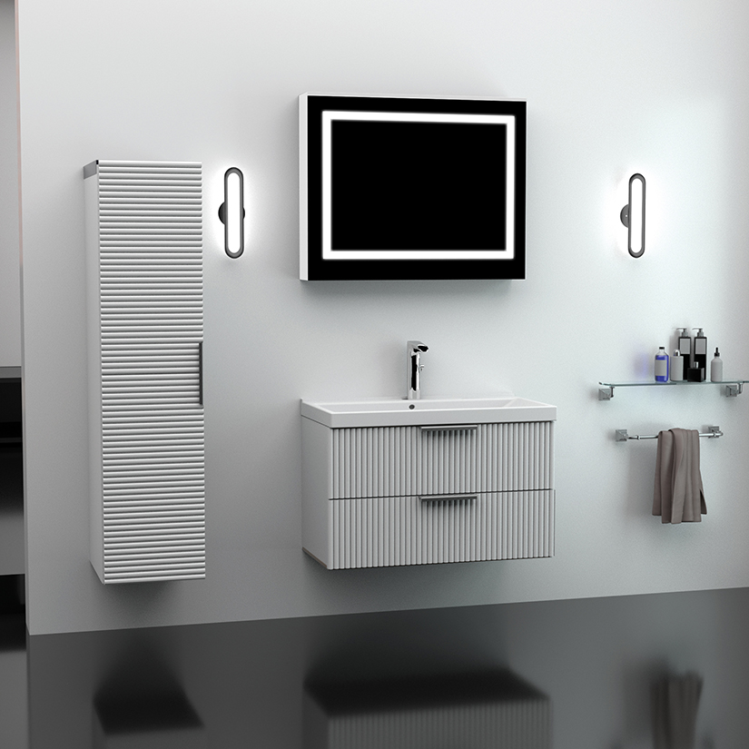 • Seramik Lavabo• Melamin MDF Lam Gövde• Thermofor Kapaklar• Thermofor Çekmeceler• Soft Menteşeler• Soft Çekmece Rayları• LED Ayna
